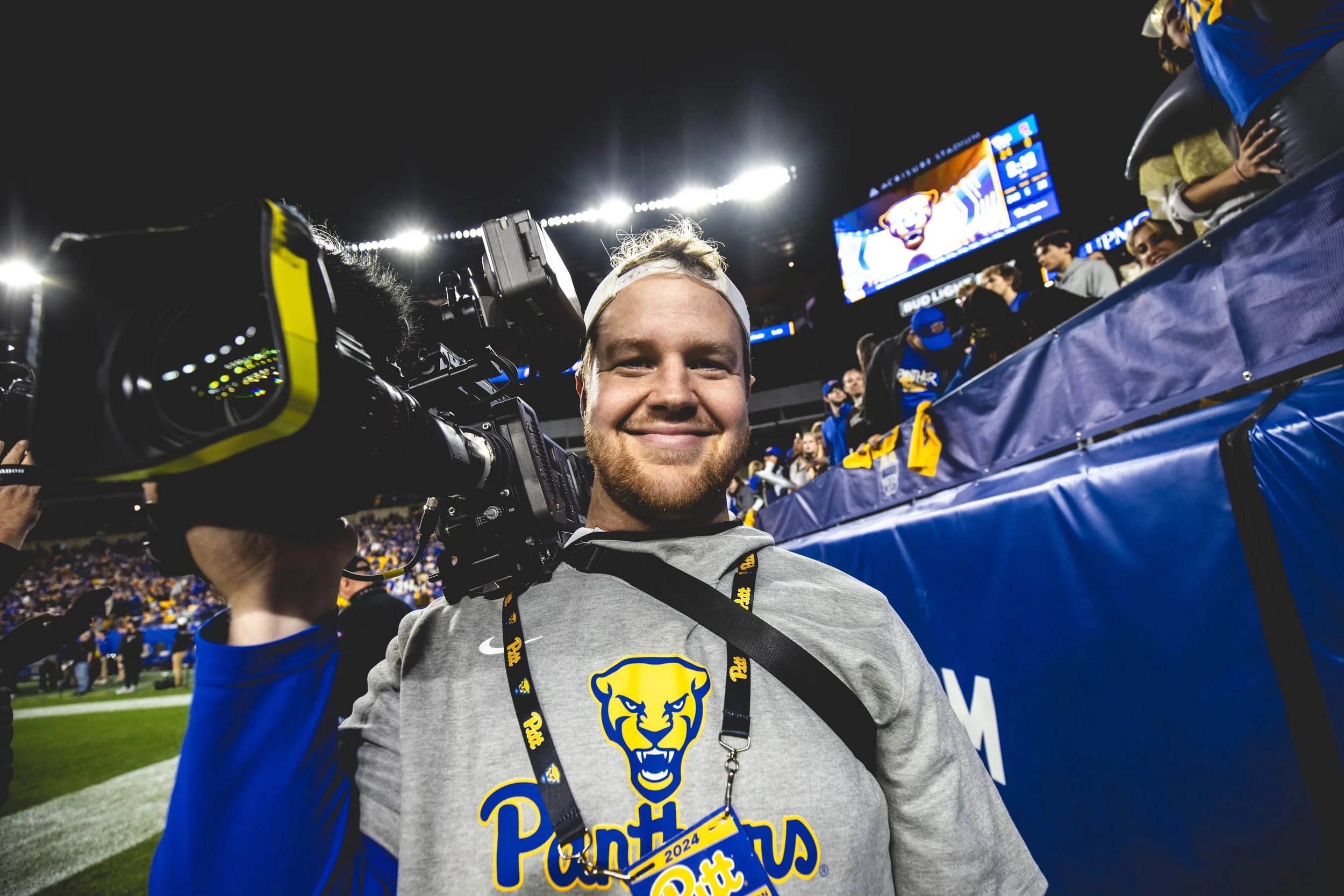 Since July 2022, I’ve been working for the Pitt football team as Director of Video Production. Over the past few years, I feel I’ve grown exponentially in every aspect of my professional life. I’ve become a far better editor, a better shooter, a better storyteller, a better sound mixer and colorist, and a better teammate. I have also enjoyed getting back into the live broadcasting world, working as a color commentator on ACC Network baseball broadcasts in my free time.